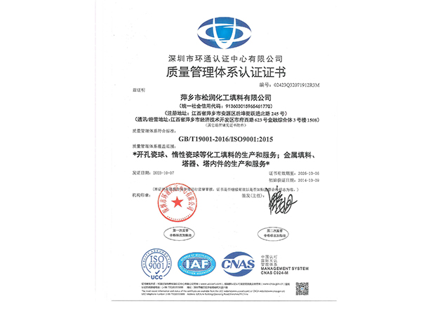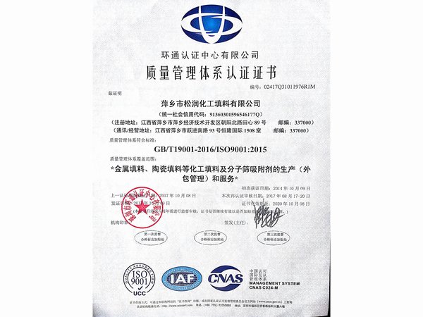 萍鄉(xiāng)市松潤(rùn)化工填料有限公司位于江西省萍鄉(xiāng)市國(guó)家經(jīng)濟(jì)開(kāi)發(fā)區(qū)西區(qū),是專(zhuān)業(yè)生產(chǎn)、經(jīng)營(yíng)陶瓷、聚丙烯、金屬填料、塔內(nèi)件、水處理濾板、濾管、濾料、瓷球、分子篩、催化劑、活性炭、蜂窩陶瓷、瓷質(zhì)耐磨托輥等系列產(chǎn)品的民營(yíng)企業(yè)。所有產(chǎn)品由國(guó)家非金屬材料和設(shè)備質(zhì)量監(jiān)測(cè)中心監(jiān)測(cè)檢驗(yàn)認(rèn)證。公司現(xiàn)有員工280人,其中有高、中級(jí)職稱(chēng)技術(shù)人員36人。工藝先進(jìn),技術(shù)力量雄厚,產(chǎn)品質(zhì)量可靠,配...